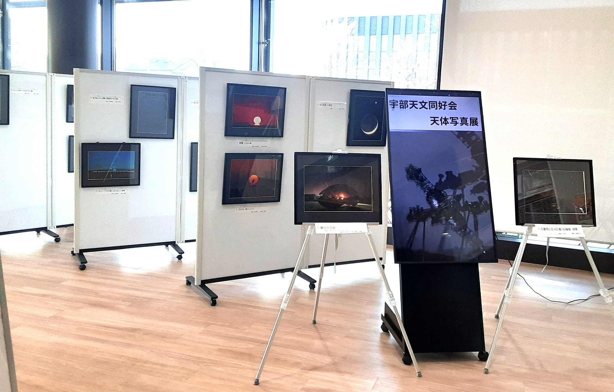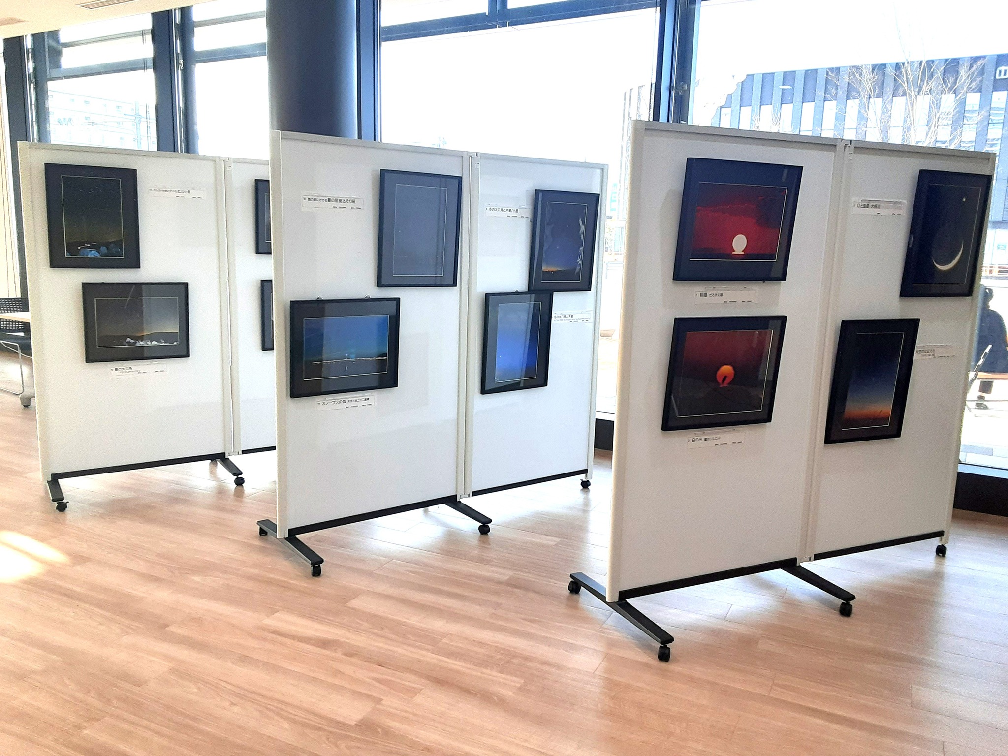 雪の畑(西岐波)にかかるさそり座・月(虹の入江)などを展示しています。